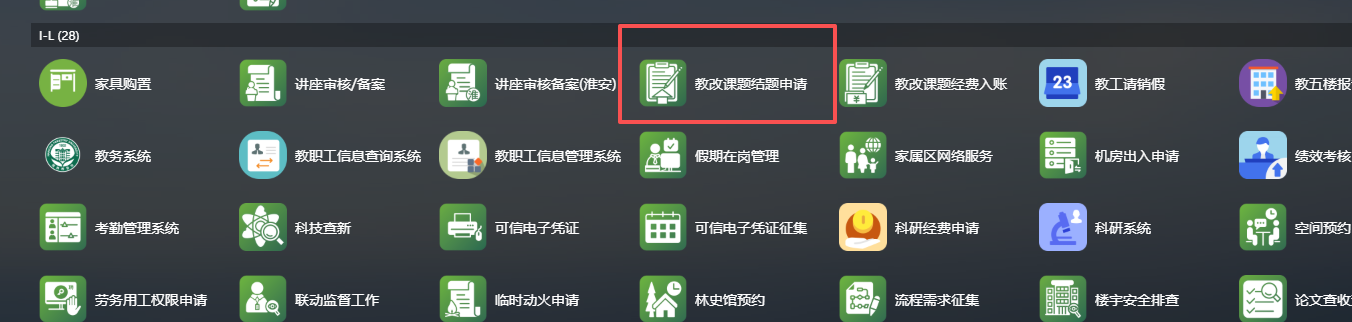 登录网上办事大厅-> 教改课题结题申请,见下图。进入小程序后,点击“高等教育研究课题结题申请”填写相关信息提交即可,无需提交纸质版。